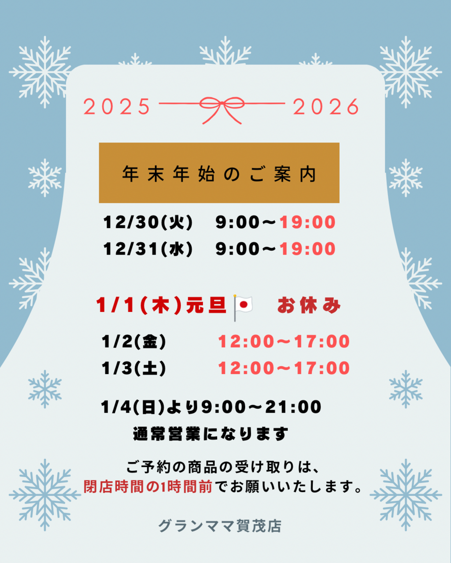パティスリーグランママ賀茂店のホームページ のお知らせ一覧に戻る